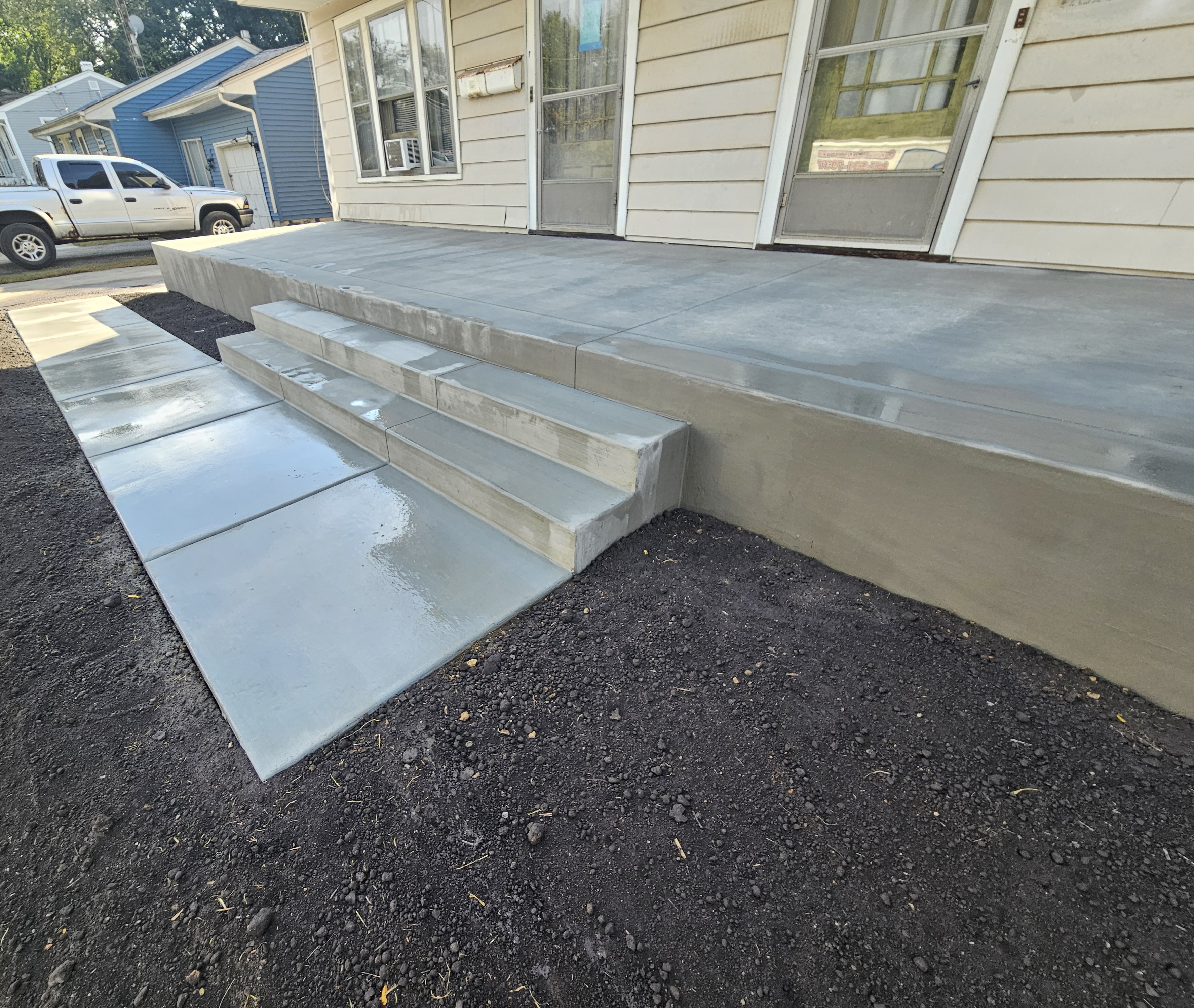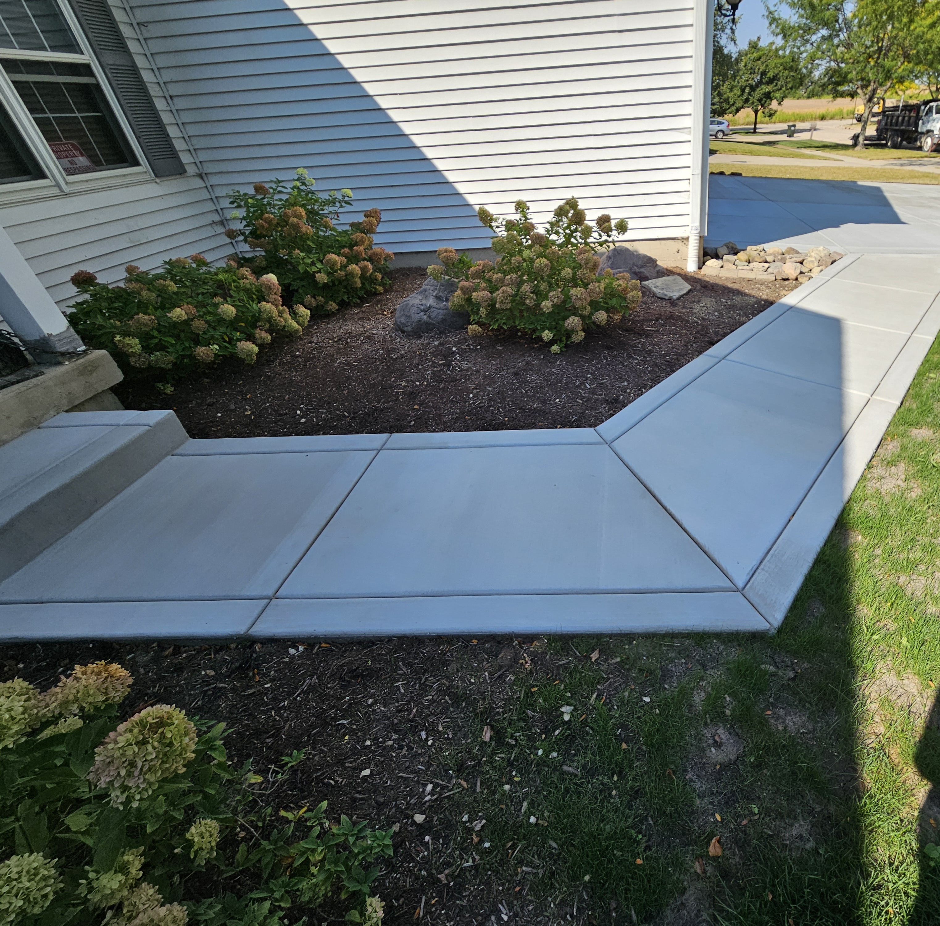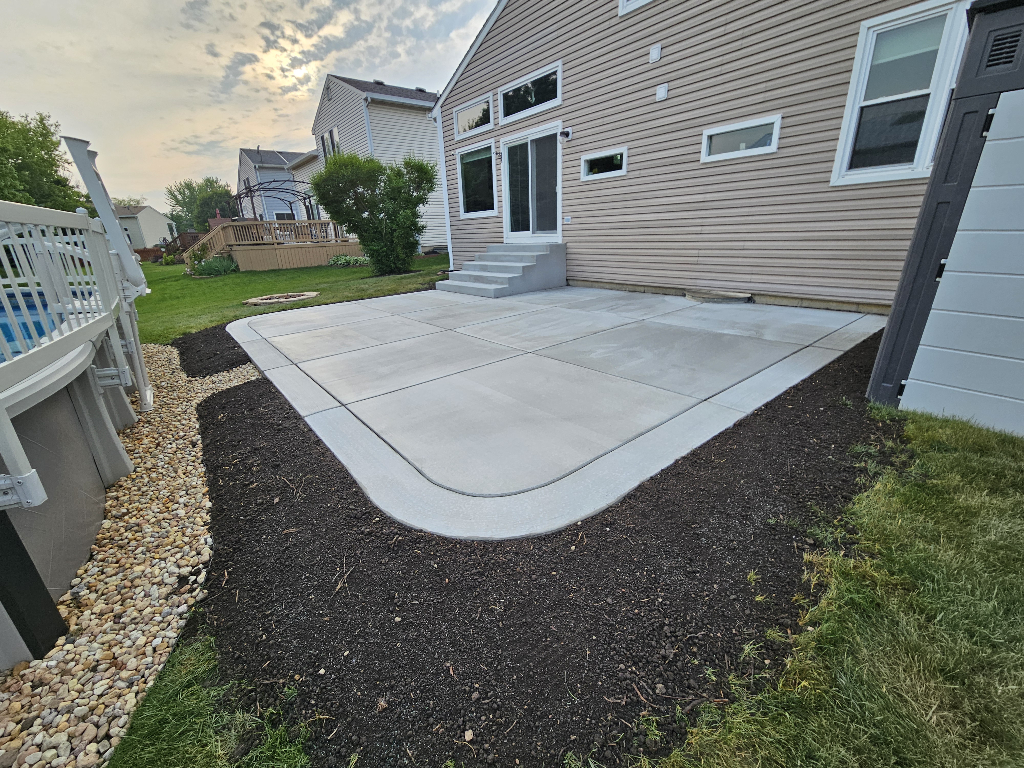 Below, you can explore galleries showcasing our work. From the timeless and minimalist look of Traditional Concrete, to decorative and artistic Stamped Concrete, or the natural beauty of a stone-rich finish you can achieve with Exposed Aggregate. Concrete offers a wide range of possibilities to suit different functional and aesthetic needs.